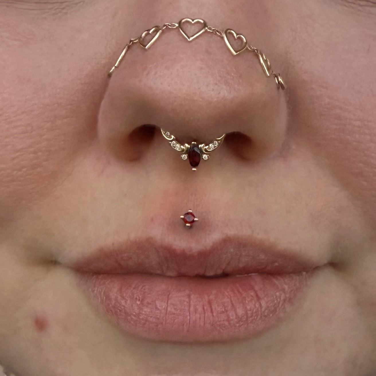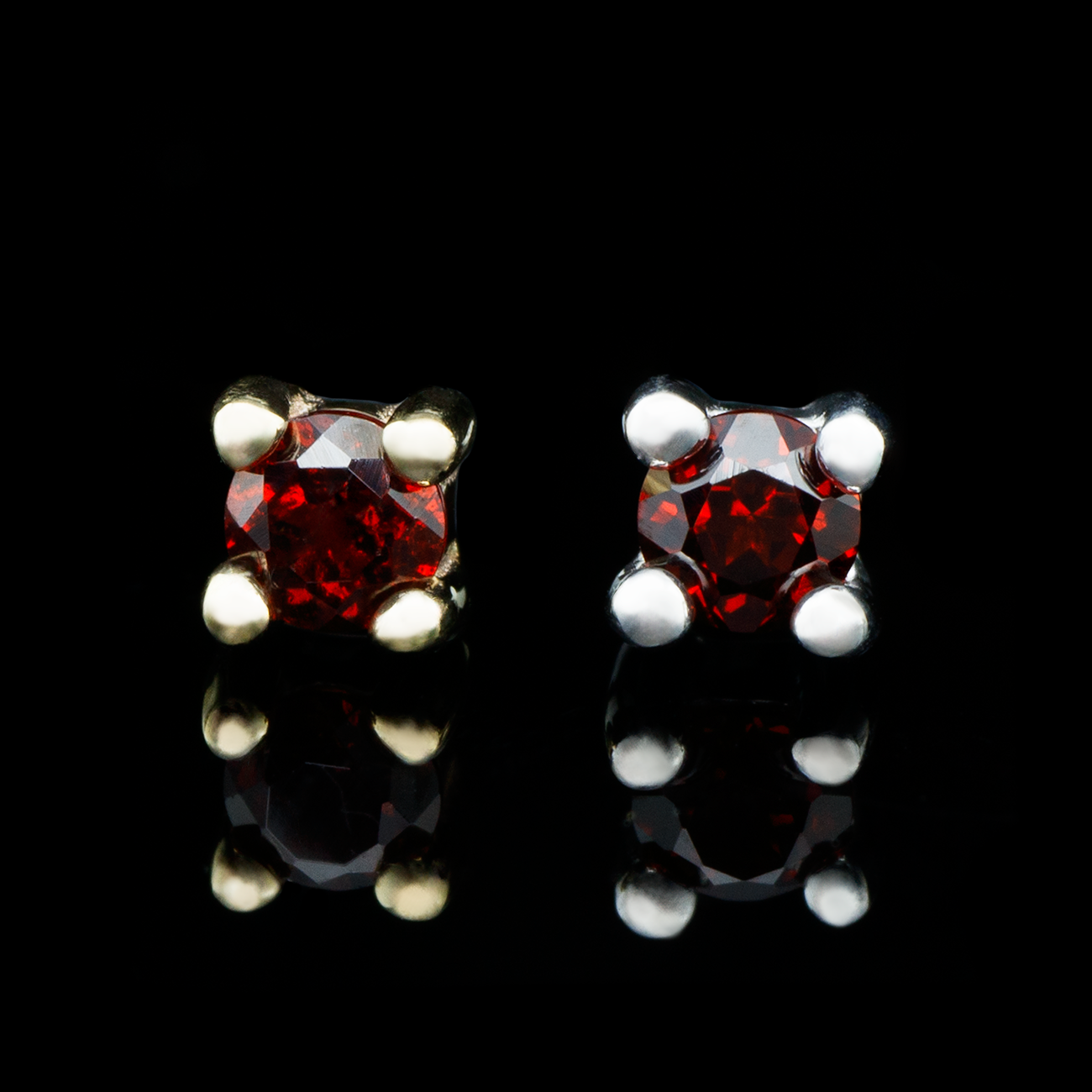 Beautiful rich garnet set in a classic 4 prong setting. The Garnet Prong is the perfect compliment to the Desden and Afterglow Ends. This piece's dainty size is just right for nostril piercings, stacked earlobes, and helix piercings. All jewelry is final sale